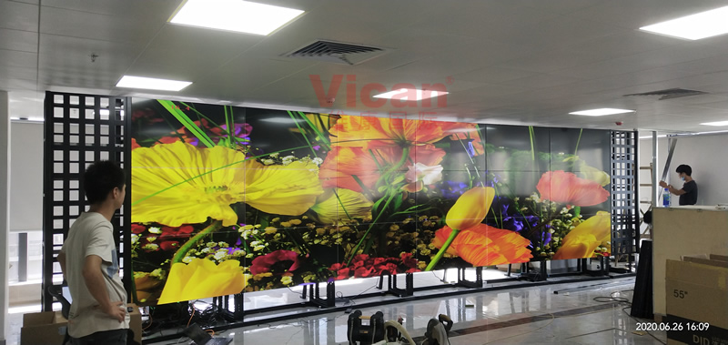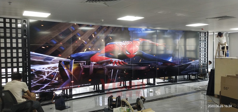 本案例中,我公司為中國華電集團廣東公司的展廳提供一套0mm無縫拼接顯示系統,由3行6列、55寸電子無縫拼接屏組成,大屏畫面清晰、亮度,LED色彩還原性好,主要用來數據信息顯示使用。