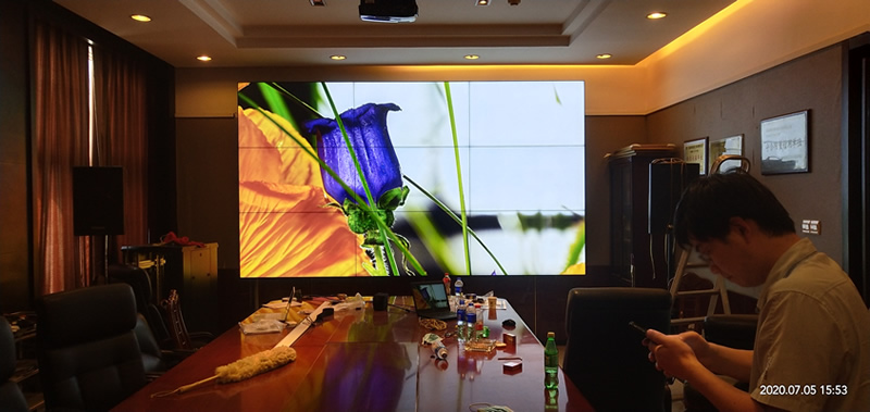 近日,我公司為湖南某學院提供了一套會議大屏顯示系統,由3x3、55寸拼接屏組成,拼縫為0.88mm,主要用來會議信息顯示使用。