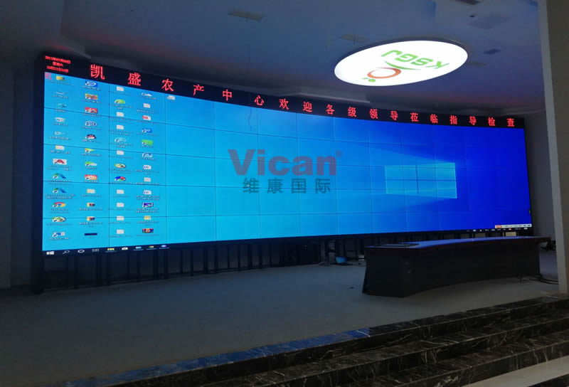 近日,我公司為凱盛農產中心提供了一套應急指揮大屏,采用5x12拼接,共60塊55寸液晶拼接屏,主要用來調度指揮及大數據顯示分析使用。