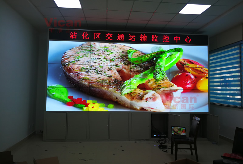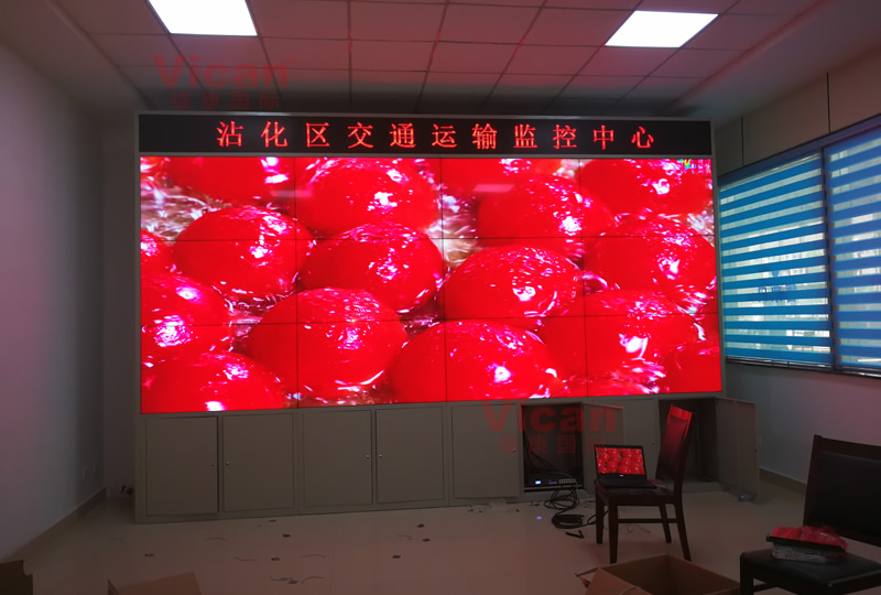 濱州市沾化區監控中心這套大屏采用3行4列、55寸拼接屏,超窄邊設計、三星原裝面板、拼縫僅有1.7mm,大屏幕顯示清晰,主要用來視頻監控系統顯示。