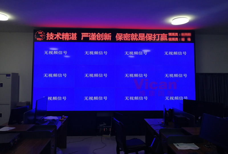 維康國際為河南某部隊提供的這套會議大屏,采用3行4列、55寸液晶拼接屏,產品性能穩定,超窄邊設計,雙邊拼縫僅有0.88mm,如上圖所示,有著很好的畫面一體化顯示效果。