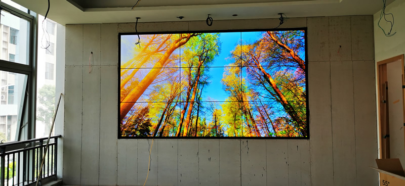 近日,該用戶為了更好的進行宣傳與推廣,采用了一套維康國際提供的大屏幕顯示系統,由3x3拼接、55寸3.5mm液晶拼接屏組成,畫面清晰亮麗,雙邊拼縫較小,采用內嵌式安裝,大屏幕與墻面連成一體,更顯高端大氣。