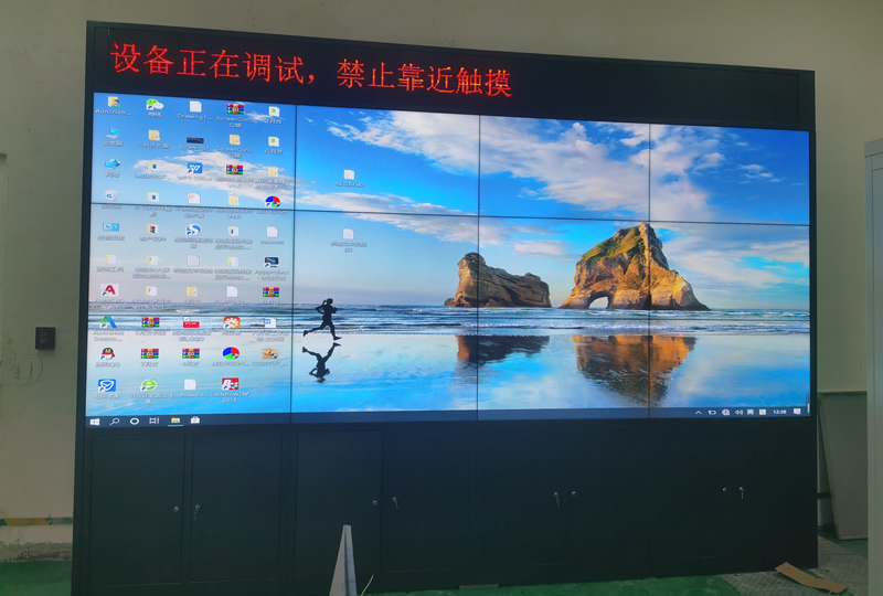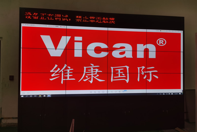 本案例中,維康國際為中國石油大學古鎮口校區提高一套會議室顯示屏,主要由3x4拼接、46寸1.7mm液晶拼接屏組成,如上圖所示,畫面清晰、雙邊拼縫較小,采用機柜式安裝,更顯高端大氣。