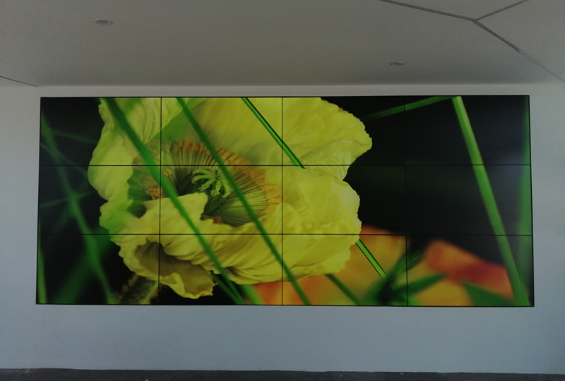 本案例中,維康國際為日照足球公園提供一套商顯拼接屏,由3行4列、55寸液晶拼接屏組成,超窄邊設計,雙邊拼縫僅有3.5mm,如上圖所示,我們從大屏可以看出,畫面顯示清晰亮麗,采用內(nèi)嵌式安裝,大屏與墻面連成一體,更顯美觀大氣。