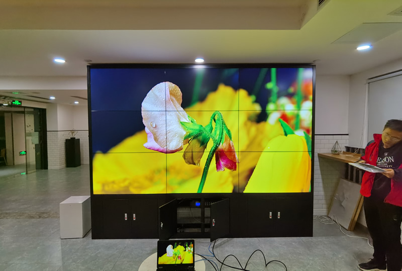 本案例中,維康國際為深業(yè)U中心提供一套大屏幕顯示產(chǎn)品,由3X3拼接、46寸液晶拼接屏組成,屏體采用三星1.7mm超窄邊面板組成,如上圖所示,大屏畫面清晰、超小拼縫,采用機(jī)柜式安裝,更顯美觀、大氣。