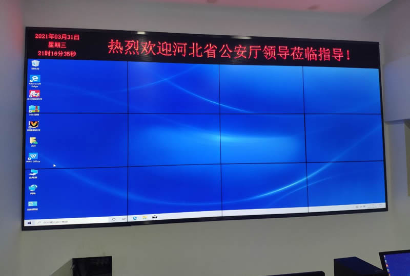 本案例中,維康國際為河北省某單位提供一套指揮中心大屏,由3x4拼接、55寸液晶拼接屏組成,液晶面板采用三星1.7mm原裝屏體,大屏高清顯示、產品性能穩定,支持24x7小時長時間不間斷的運行模式。