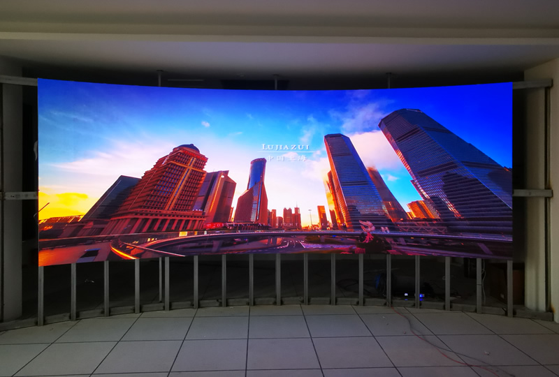 本案例中,維康國際為廣州天河某軟件公司提供一套展廳LED顯示屏,采用弧形安裝方式,COB小間距技術,有著更好的顯示效果,如上圖所示。