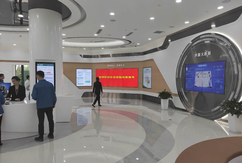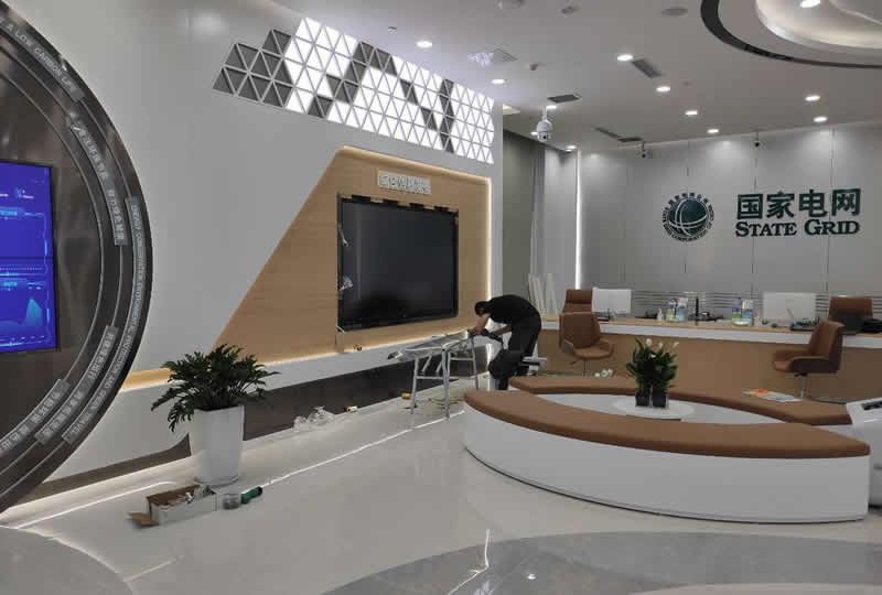 本案例中,維康國際為某國家電網展廳提供多套顯示大屏,由液晶拼接屏、網絡廣告機、觸摸一體機組成,如上圖所示。