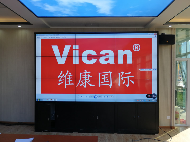 我公司在濟南CBD中鐵八局安裝的這套大屏,采用3行3行-49寸3.5mm拼接屏,主要用來會議顯示使用。