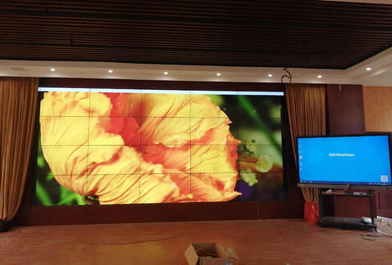 本案例中,維康國際為福建泉州某服裝廠提供一套室內的舞臺顯示大屏,采用4x5拼接、55寸液晶拼接屏,LG超窄邊1.8mm液晶面板,大屏幕畫面清晰,一體化顯示效果好。