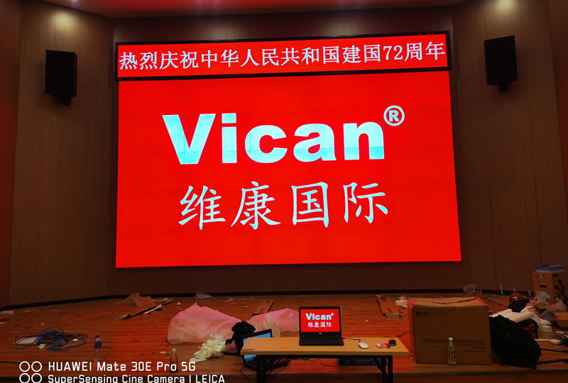 本案例中,維康國際為四川綿陽市某單位提供了一套會議顯示大屏,由5x5拼接、55寸0.88mm液晶拼接屏,帶LED條屏組成,大屏幕畫面顯示清晰亮麗,超窄邊縫隙,具有很好的一體化顯示效果。