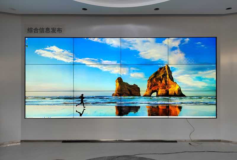 本案例中,維康國際國家電網上海某營業廳提供一套綜合信息發布大屏,采用33行4列、55寸液晶拼接屏,3.5mm液晶面板,大屏幕畫面顯示清晰,一體化效果較好,采用內嵌式安裝,更美觀時尚。