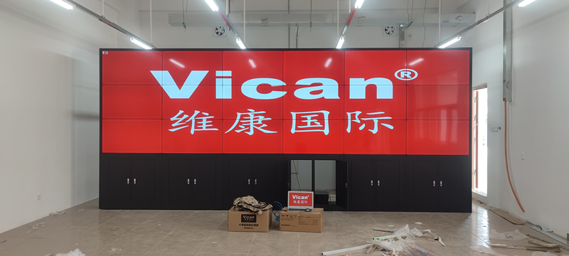 本案例中,維康國際為云浮市郁南西江中學(xué)提供一套會議室顯示大屏,采用3*6拼接、49寸3.5mm液晶拼接屏,機(jī)柜式安裝,如上圖所示。