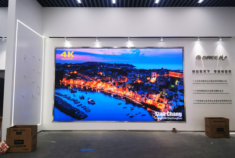 本案例中,維康國際為寧鄉市格力工廠提供一套大屏,采用P1.8間距的LED顯示屏,大屏幕顯示清晰、色彩豐富、一體化顯示效果好。