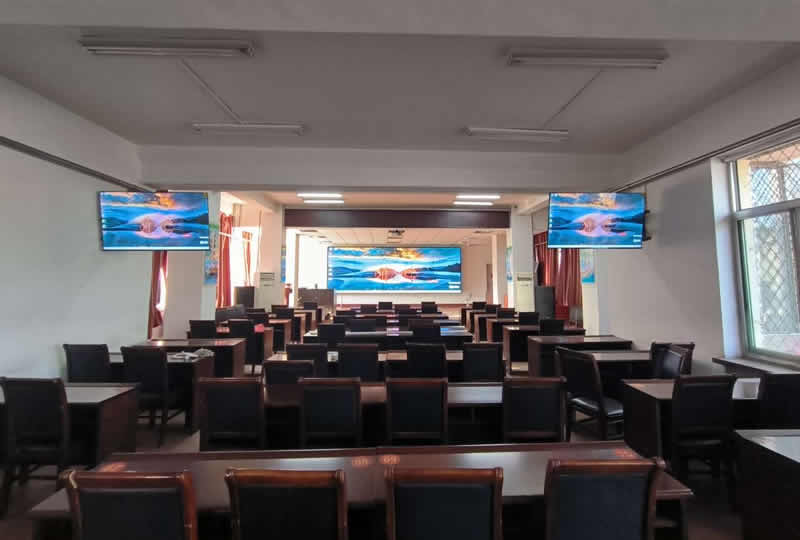 本案例中,維康國際為廣州市黃浦區某單位提供一套會議廳顯示大屏,由一組3x5拼接、55寸拼接屏和2臺液晶顯示大屏組成,與上圖所示,大屏幕顯示清晰,視覺效果好。