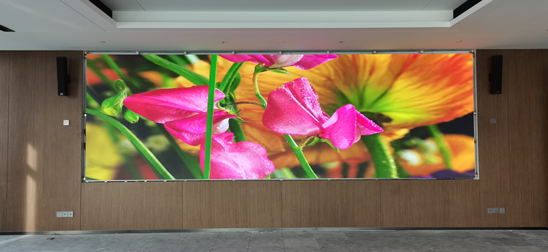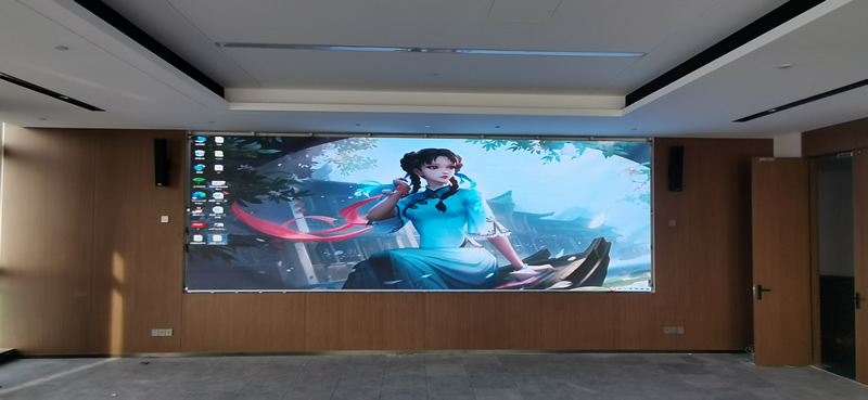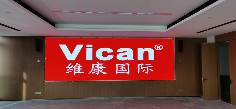 本案例中,維康國際為廣州市天河區某企業提供一套會議室大屏,采用P1.86間距LED顯示屏,顯示面積近15平方米,大屏幕畫面清晰,色彩鮮艷,無縫隙拼接,視覺體驗效果很好。