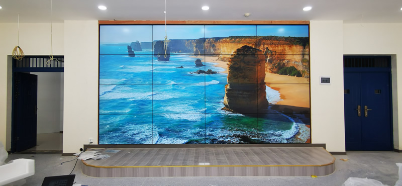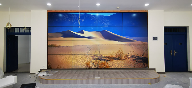 本案例中,維康國際為廣州番禺某企業培訓室提供一套顯示大屏,采用4行4列的55寸液晶拼接屏,拼縫為3.5mm,屏幕尺寸大,顯示清晰,色彩豐富。