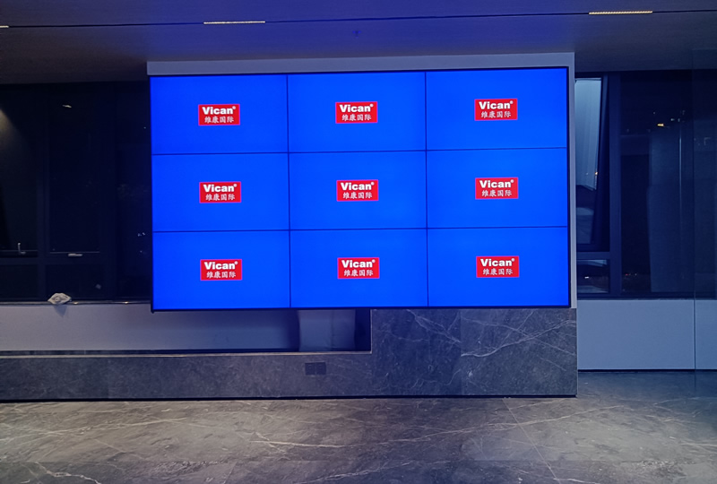 本案例中,維康國(guó)際為深圳南山某公司提供一套現(xiàn)代展廳顯示大屏,由于3*3拼接、55寸液晶拼接屏組成,采用1.7mm小拼縫款式,大屏幕顯示清晰,視覺體驗(yàn)效果好。