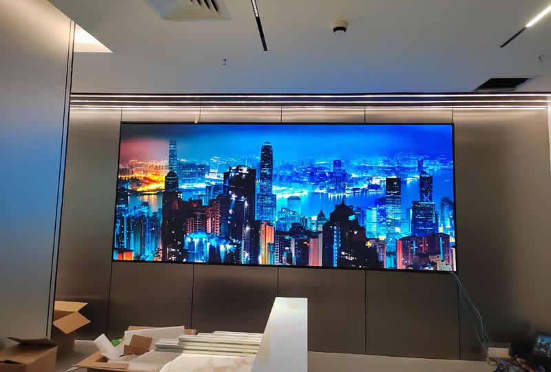 本案例中,維康國際為深圳南山智園某企業前臺提供一套LED大屏,采用P1.86全彩LED,顯示面積近10平方,大屏幕顯示清晰,視覺體驗效果好。