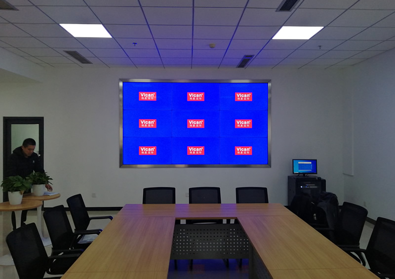 本案例的大屏,是維康國際為濰坊聯通提供了3x3拼接、55寸無縫液晶拼接屏,主要用來做辦辦會議顯示使用。