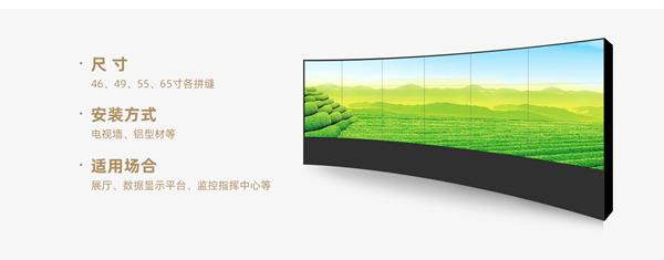 把拼接屏做成一個弧形的顯示大屏幕,并不是拼接屏本身是弧形的,而是在安裝時通過一定角度的排列實現弧形的顯示效果和形狀。