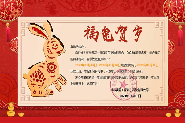 新年將至,預祝大家新年快樂!感覺大家一直以來的支持與認可。根據相關規定,結合我司經營情況,2023年春節放假公告如下: