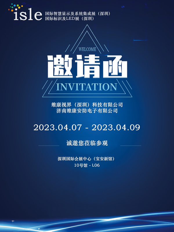 2023年isle深圳國(guó)際智慧顯示及系統(tǒng)集成展、國(guó)際標(biāo)識(shí)及LED展即將開(kāi)啟,維康國(guó)際集團(tuán)旗下維康視界(深圳)科技有限公司、濟(jì)南維康安防電子有限公司誠(chéng)邀您蒞臨參觀: