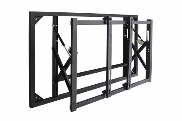 這是目前比較流行的一種支架,它也是壁掛式的一種,把液壓前維護(hù)支架固定在墻上,然后再把拼接屏掛上去,與壁掛支架一樣,需要考慮墻體的承重力與安全性。液壓前維護(hù)支架的優(yōu)勢在于維護(hù)的便捷性,只需要輕輕一按,拼接屏就會彈出來。很多客戶是采用內(nèi)嵌式來安裝,這樣更美觀大氣。