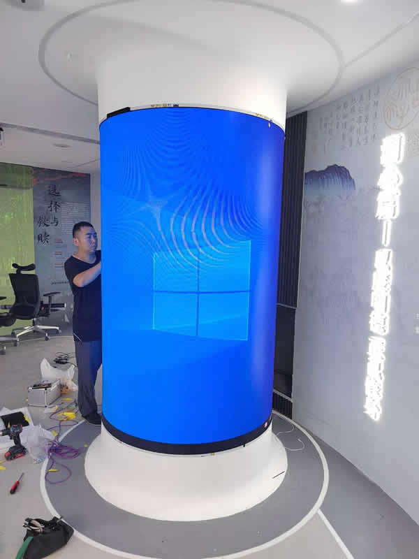 對于弧形LED顯示屏方案的設計,一般是根據客戶的安裝場合來設計弧度,比如在原有的弧形墻面上或是圓柱形柱子上直接安裝,這時只需要根據這些安裝場合的弧度來定制安裝支架,然后把LED軟模組貼上去即可。當然,還有一些使用場合是直接定制的,根據客戶所需的弧形而設計安裝支架,然后安裝LED軟模組。