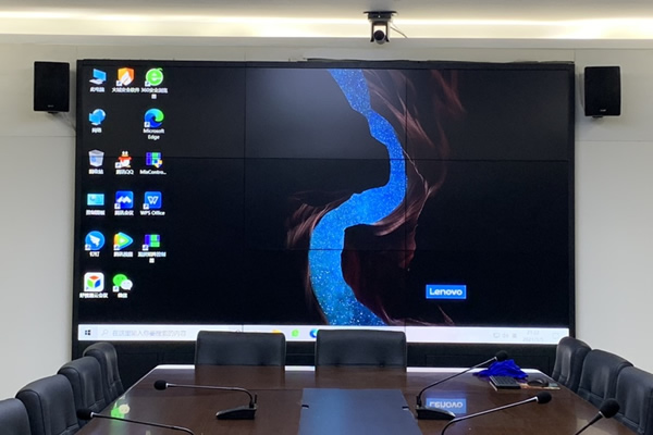 因為是用于會議顯示,所以信號源多是電腦信號,一般整屏只顯示一個畫面,主要顯示視頻、PPT、圖片等,所以對于顯示效果的要求要比監控顯示高。以大尺寸為首選,建議選擇55寸拼接屏,因為尺寸越大,所使用的拼接數量越少,可以減少拼縫數量,一定程度上會提升觀看效果。另外,大尺寸面板也是會議拼接屏發展的方向。