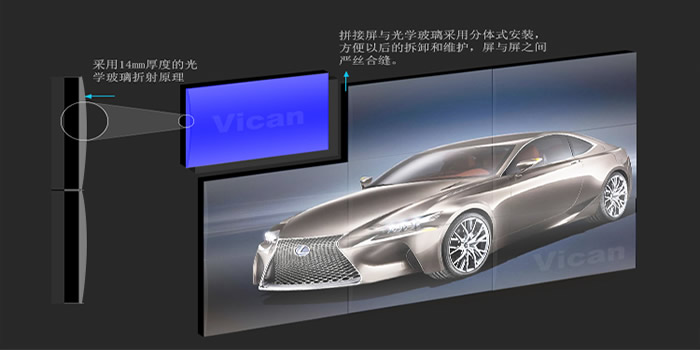 7、這款光學無縫拼接技術并非沒有拼縫,是在物理上實現(xiàn)對原有拼縫的消隱,在實現(xiàn)無縫化顯示的同時,還降低了技術成本,使整個產(chǎn)品的價格控制在一個合理的區(qū)間范圍以內。