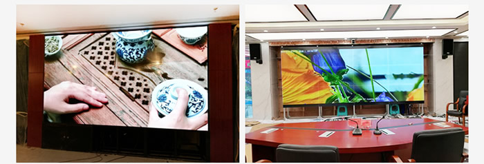 使用的是軟硬件相結合技術,具體技術原理是在傳統液晶拼接屏面板的左側與上方分別添加了由兩排p1.5mm的LED燈珠組成的發光芯片,同時在屏幕前面的邊框處添加了高透光度的會聚透鏡封裝邊條,這樣在開機顯示時,整個圖像顯示的更加柔和,與液晶顯示的原色無異。