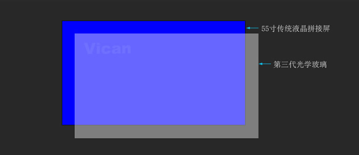 維康自主研發BFT技術,采用優良高分子高透明材料PMMA,利用光線折射原理,解決液晶屏拼接存在的物理黑邊問題,實現屏幕之間的縫隙消隱,展現出屏幕巨大一體化顯示效果。