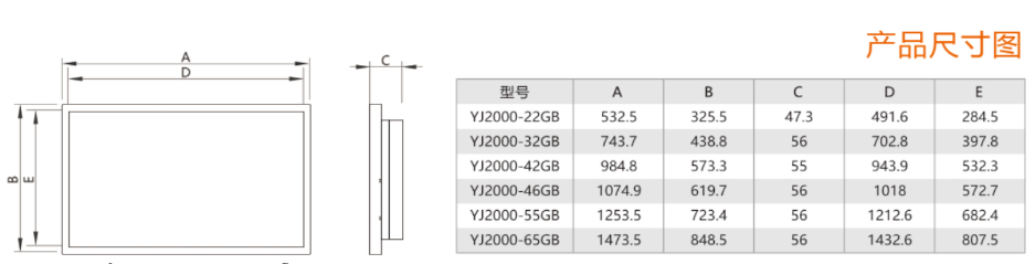 壁掛式設計,尺寸為22寸~65寸,分為圓角款和直角款,并可采用橫掛和豎掛兩種安裝方式;