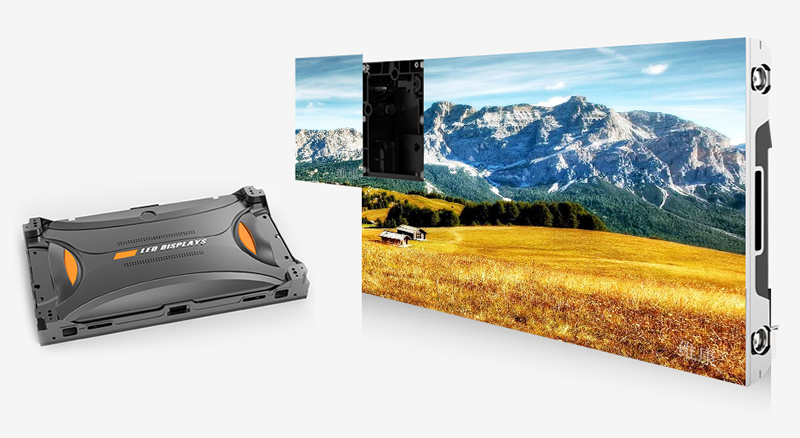 COB小間距LED顯示屏采用壓鑄鋁箱體式設計,箱體比例16:9,支持前維護安裝。
