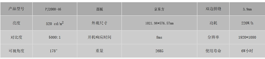 4、京東方3.9mm46寸液晶拼接屏,左上拼縫2.0mm,右下拼縫1.9mm,主要用于視頻監(jiān)控顯示與會議顯示。