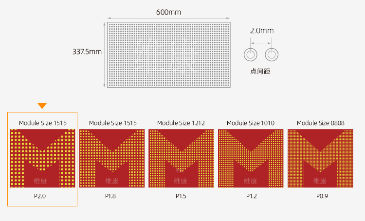 點間距只有2.0mm,采用SMD封裝而成,主要應用于室內全彩顯示大屏場合。