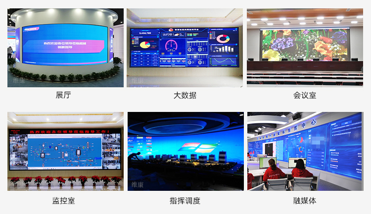 P1.2小間距led顯示屏由于點間距小,所以大多應用在室內的高端大屏顯示領域,如企業展廳、大數據顯示、會議室、指揮中心、電視臺融媒體等。