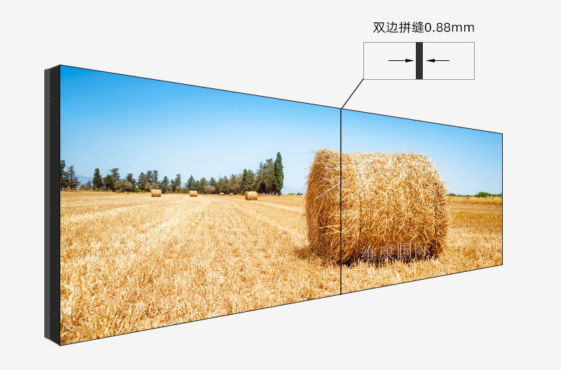 46寸拼接屏0.88mm指的是雙邊物理拼縫為0.88毫米的拼接屏,采用46寸的原裝面板組成,超小拼縫,視覺體驗效果更好。