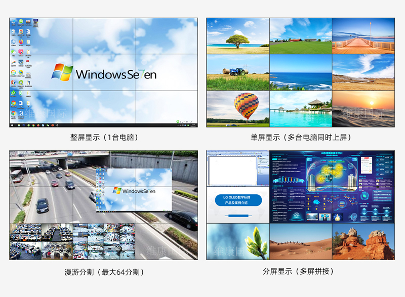 維康國際提供各種面板、各種尺寸與拼縫的拼接屏產品,除了46寸拼接屏0.88mm以外,還提供55寸0.88mm、55寸1.8mm和1.7mm等各種規格的產品,其中面板多以LG、京東方等為主。