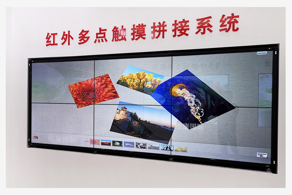 下圖是我公司安裝在深圳展廳的一組2*3的觸摸拼接屏實拍圖,采用紅外多點觸摸技術(shù),支持多人同時觸摸屏幕。