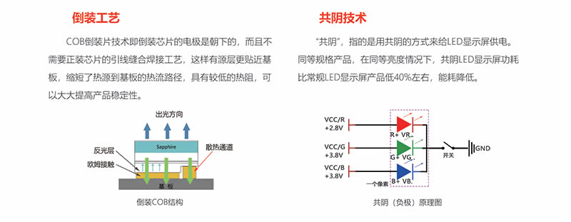 全倒裝工藝配套共陰方案,穩定性好,低耗節能