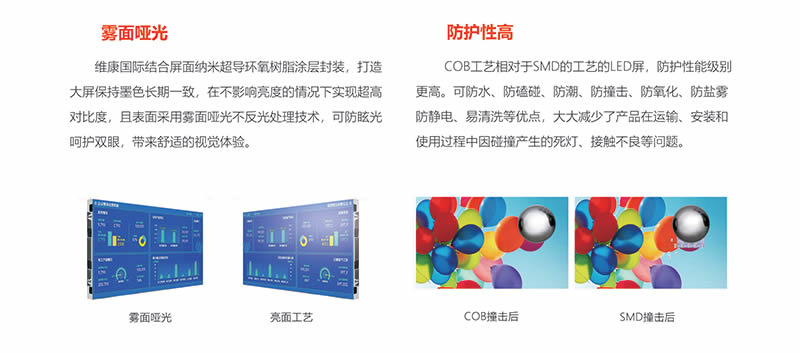COB集成封裝顯示屏采用面板封裝技術,沒有燈腳裸露問題,具有防潮、防塵、防靜電等功能。