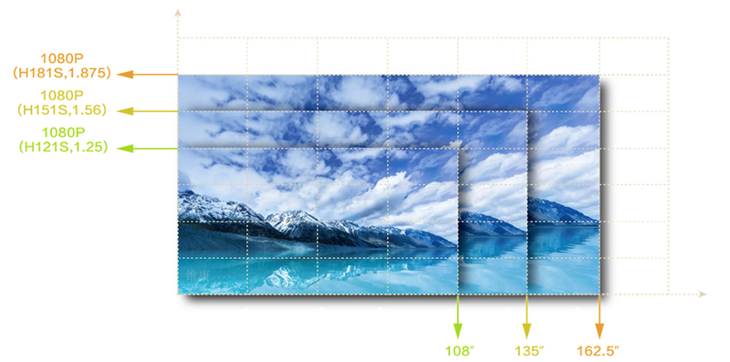 由于箱體是16:9比例,所以在拼接時只要保證等比例數量的拼接,整個LED顯示屏就不會發生變形,從而保證整體的顯示效果。如下圖,P1.53小間距LED顯示通過5*5拼接后即可達到一個1080P的分辨率效果。