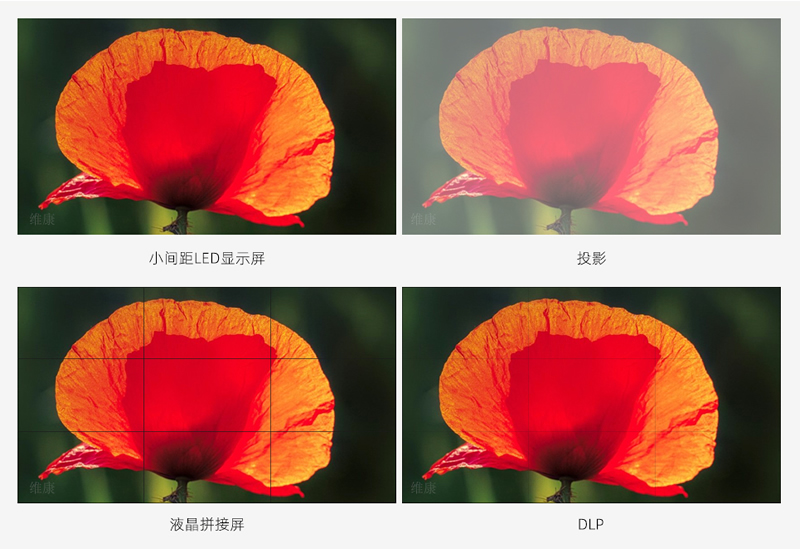 在顯示時,不會像投影那樣畫面發白,也不會像液晶拼接屏和DLP大屏那樣有拼接縫隙,整個屏幕的顯示效果更佳。