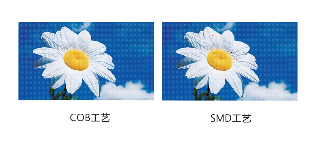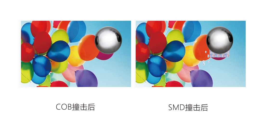 COB工藝相對于SMD的工藝的LED屏,防護(hù)性能級別更高。可防水、防磕碰、防潮、防撞擊、防氧化、防鹽霧防靜電、易清洗等優(yōu)點,大大減少了產(chǎn)品在運(yùn)輸、安裝和使用過程中因碰撞產(chǎn)生的死燈、接觸不良等問題。