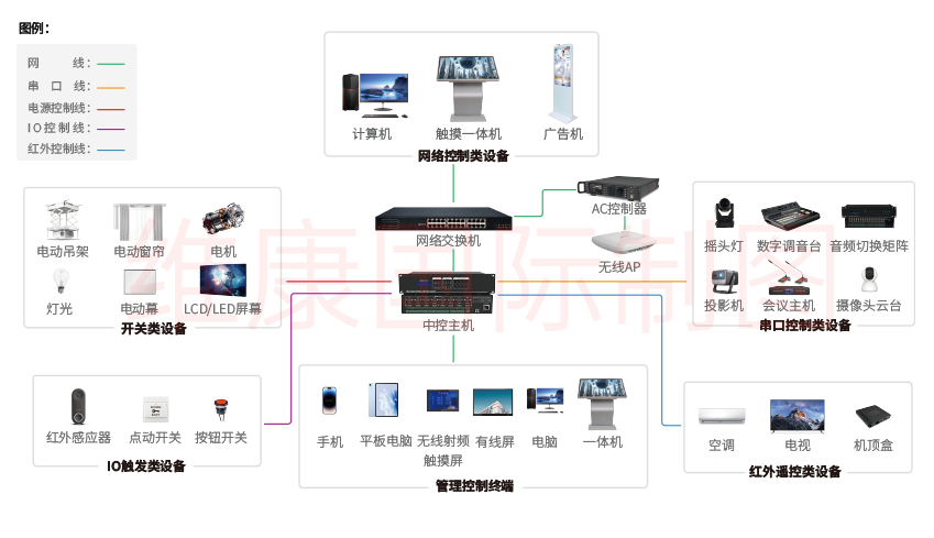 該系統可以根據不同的展示場景和活動需求,預設多種場景模式進行設備聯動,切換自如。