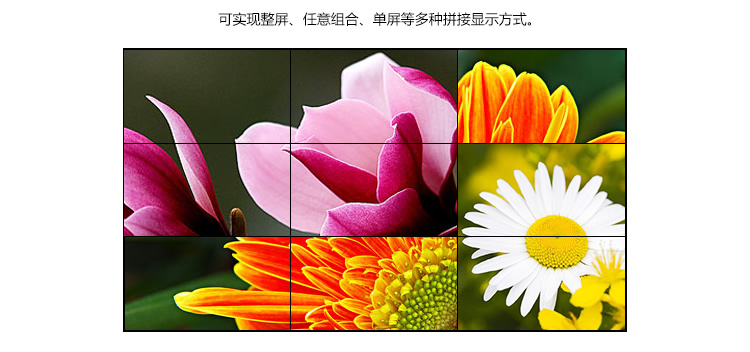 本方案液晶拼接屏采用3行x5列維康點對點圖像處理器,單臺物理分辨率1920x1080,總分辨率9600x3240(1920x5=9600,1080x3=3240), 拼接顯示圖像點對點、不拉伸、不變形,畫質更加細膩清晰。