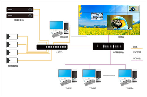 我們在前期設計方案時還要考慮到一系列的問題,包括前端的監控攝像機、傳輸、解碼平臺、大屏拼接數量等,只有綜合所有的設備發揮各自的功能才可以實現用戶想要的顯示效果。